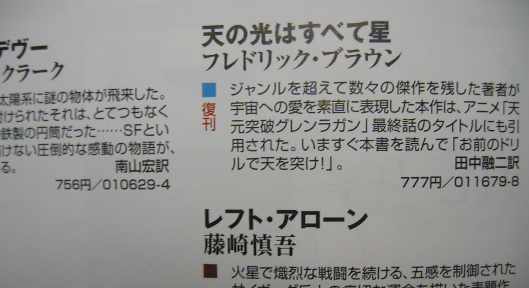 『グレンラガン』と『天の光はすべて星』のラストシーンに共通する「せつなさ」って、どこかで見たような気がする。